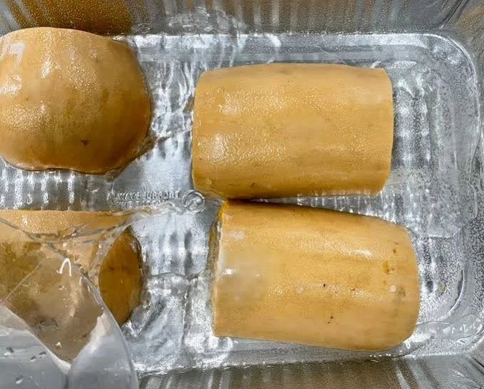 Using a knife, cut tube into ½ inch (Bite Sized) pieces.