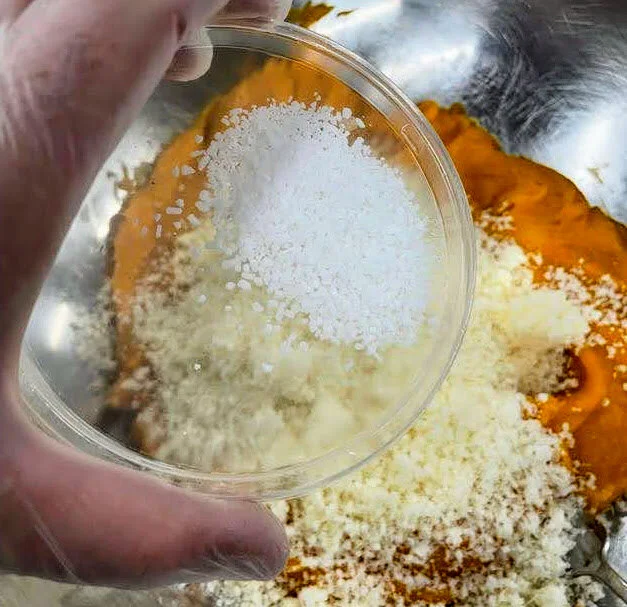 In large mixing bowl of puree (or mash) add 1 cup of the flour, Nutmeg, 2 cups of parmesan cheese, 1 teaspoon of salt and 2 eggs. (Make sure squash puree if fully cooked as to not cook the eggs)